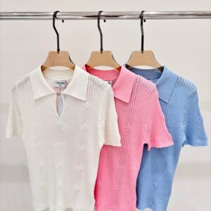 C-lapel letter hollow knitted short sleeves 100002