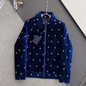L-Full Width Hot Silver Letter Embroidery Pattern Navy Blue Velvet Zipper Thin Cotton Jacket Coat Cotton Coat Jacket