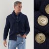 BC-Men's Thick Sweater Semi-British Green Neck Ribbed Cardigan quantity