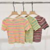 C- Colorful striped simple knitted short sleeves 100009 quantity