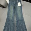 C-Embossed rhinestone stretch denim flared pants 0036 quantity