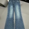 C-High-grade slim stretch denim flared pants 0016