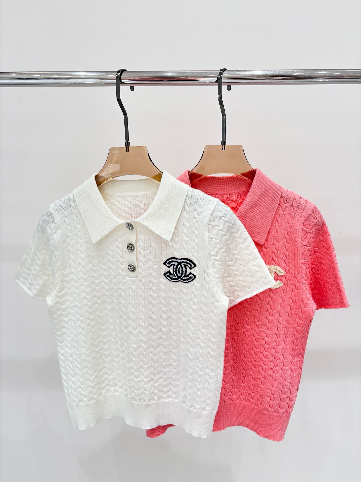 C- Lapel letter sticker simple casual knitted short sleeve 100005 quantity