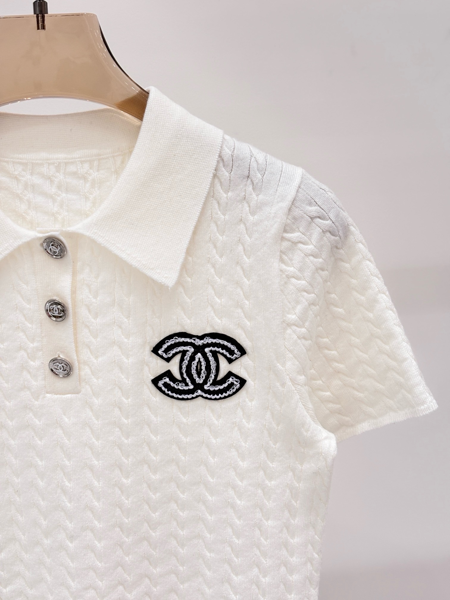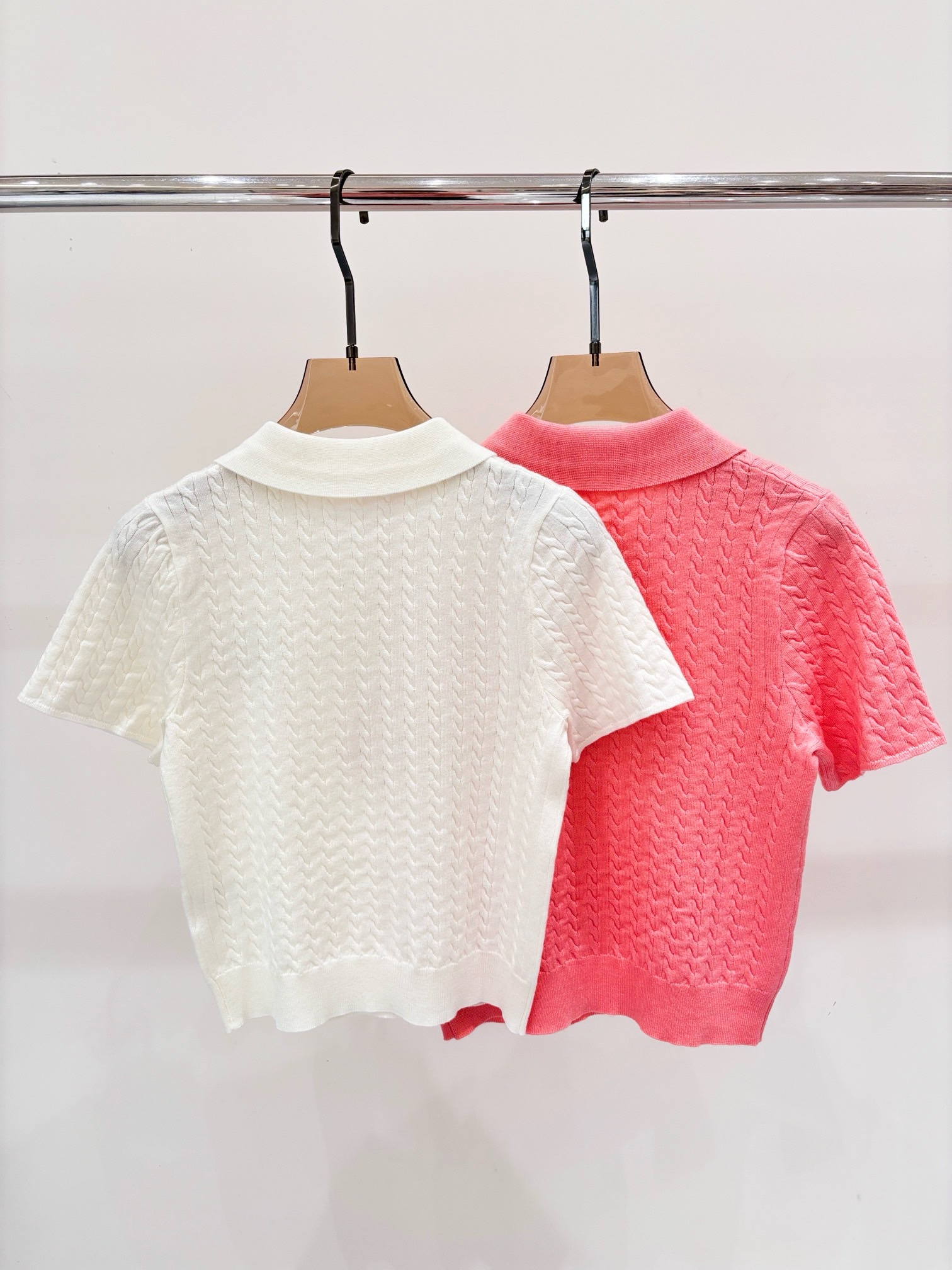 C- Lapel letter sticker simple casual knitted short sleeve 100005