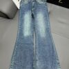 C-Shadow hem colorblock leather label denim flared pants 0030 quantity