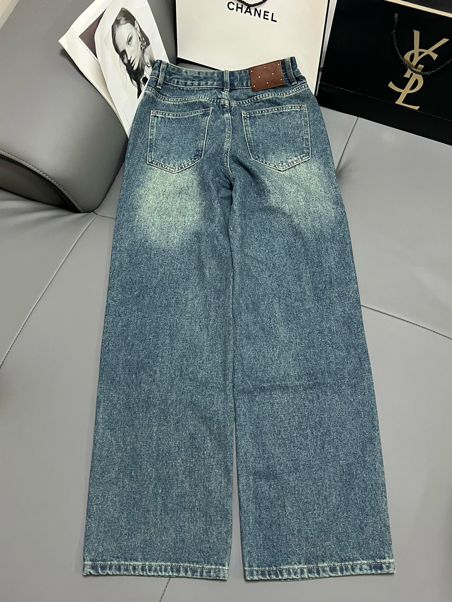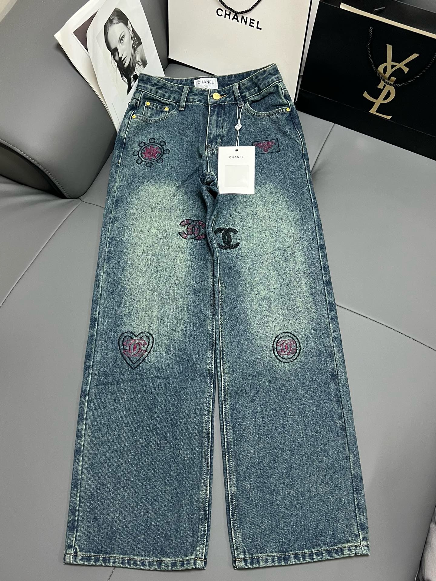 C-stitching vintage embroidered straight jeans 0027 quantity