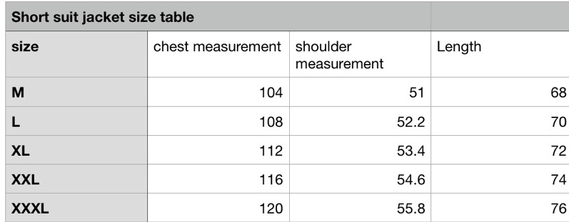 M, L, XL, XXL, XXXL