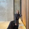 L-Early Spring New Classic Old Flower Pop-up Print Lapel Long Skirt