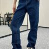 / L- Fashion raw edge embellished denim trousers 1000235