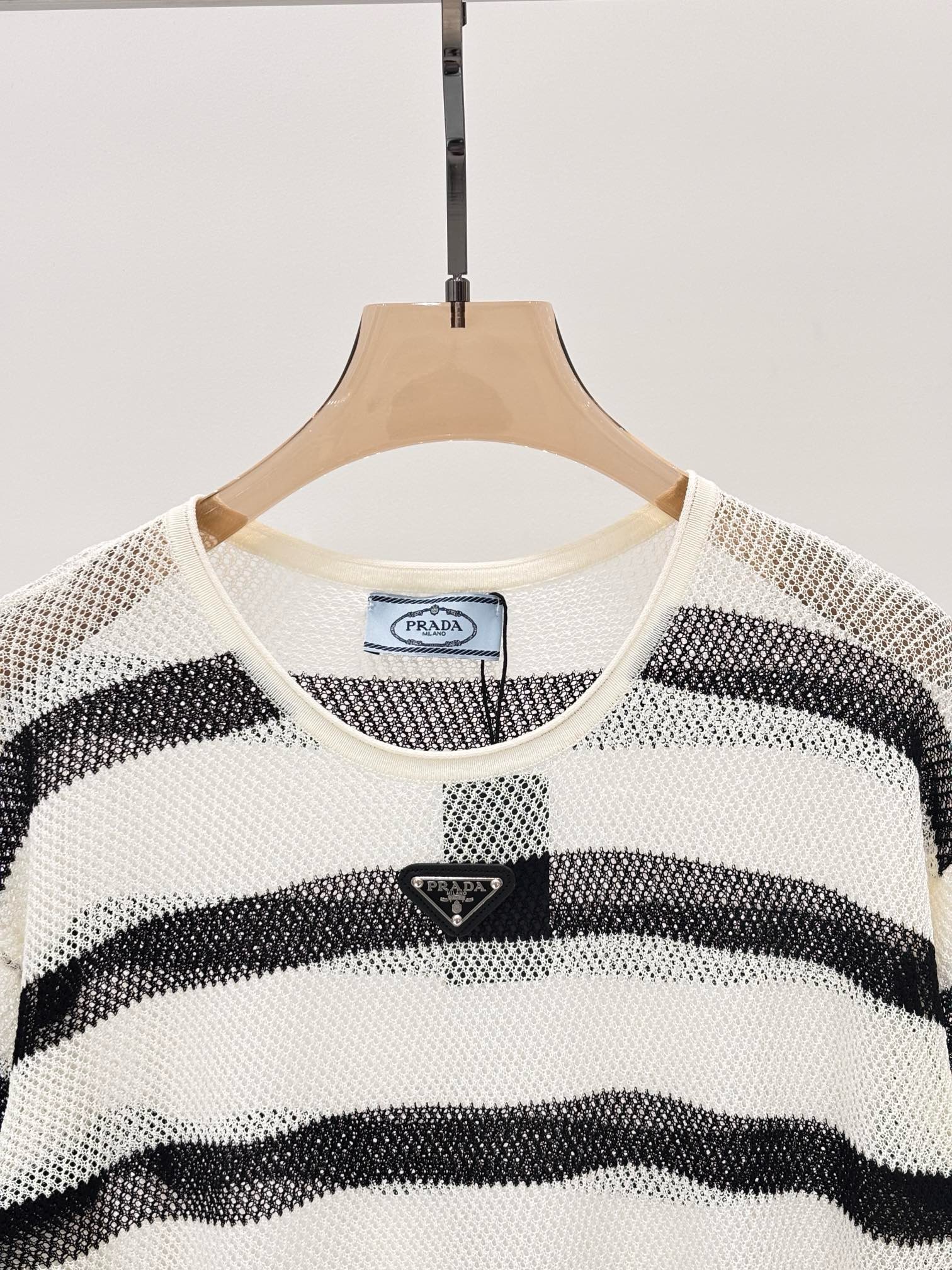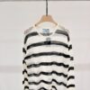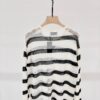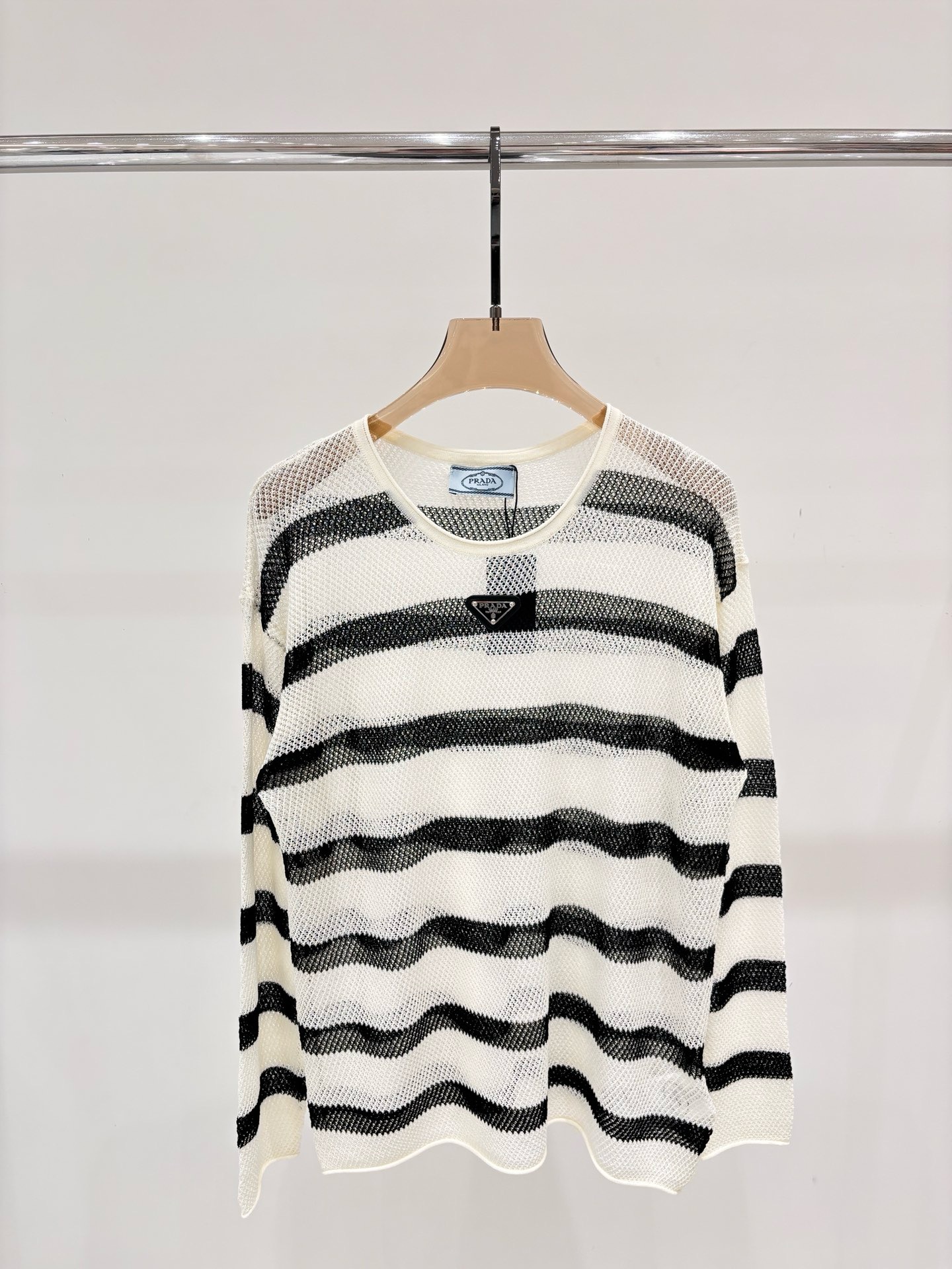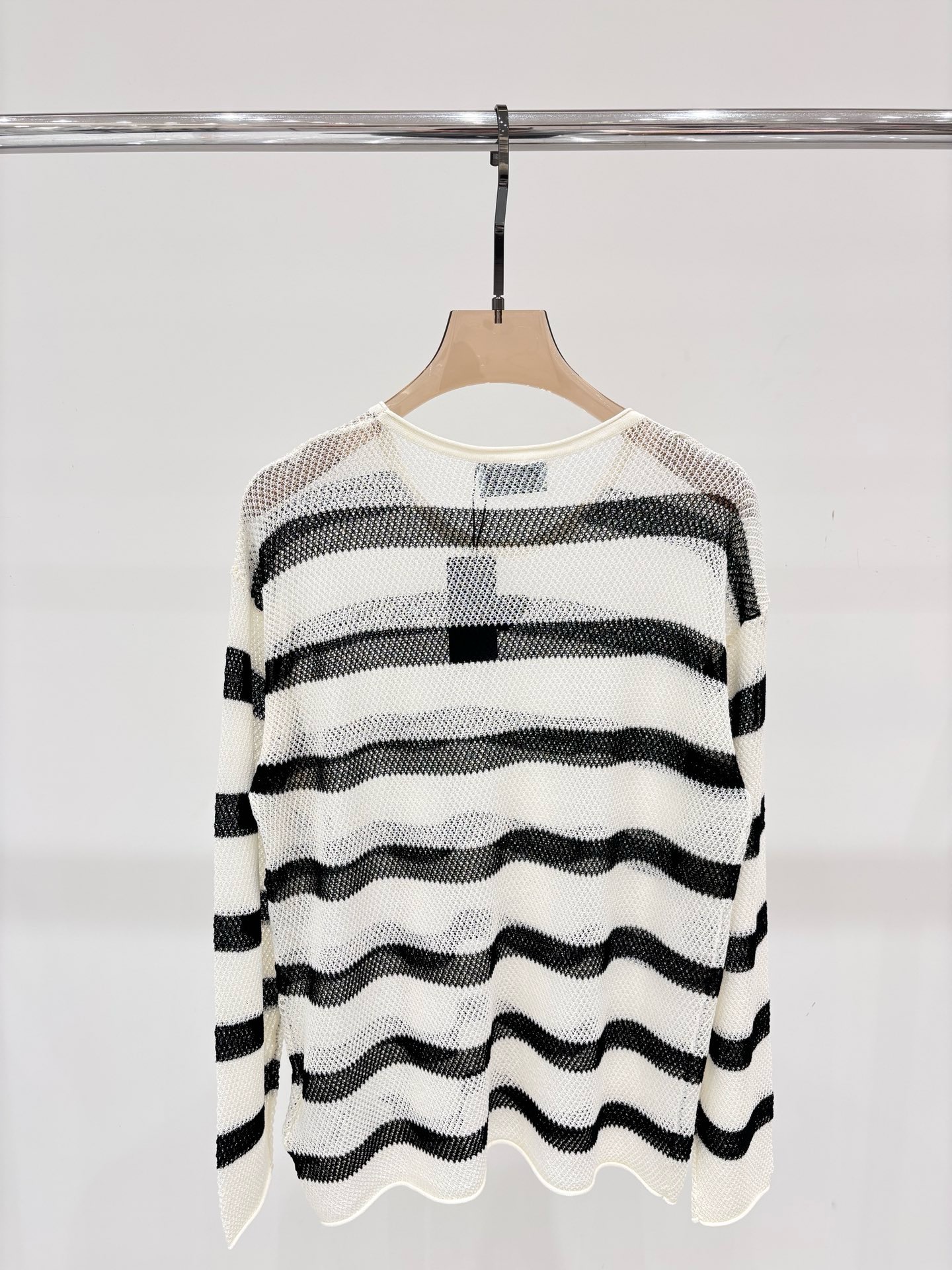 P-round neck striped contrast color hollow knitted long sleeves 100016