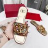 V-New British Fashion Gold Buckle Flat Shoes v Buckle One Word Slippers Woven Slippers