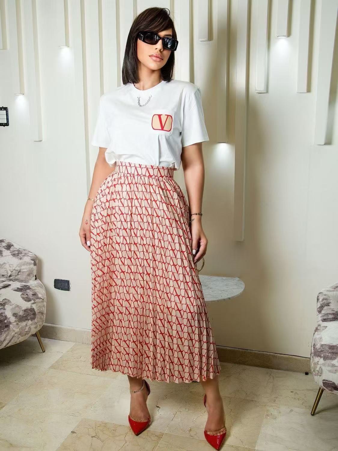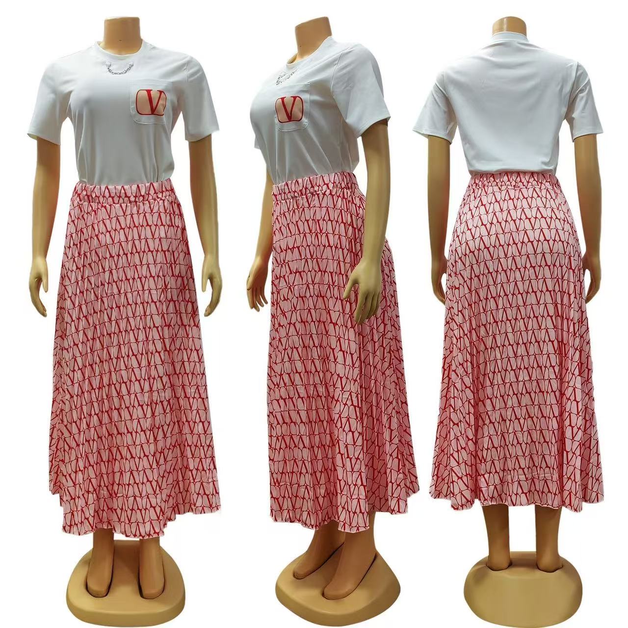 / V-Summer Fashion Pocket Short Sleeve + Pleated Skirt Set