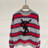 / Y- Round Neck Contrast Stripe Letter Knit Long Sleeve 100024